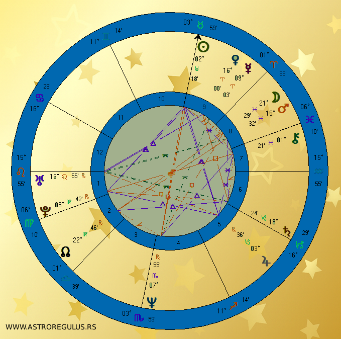 No, verovatno nije računao na to da će mu 9. kuća u kojoj se nalazi vladar Ascendenta – Sunce, doneti posao u televiziji i (9. kuća – Strelac – televizija) i da će to postati njegov životni put.