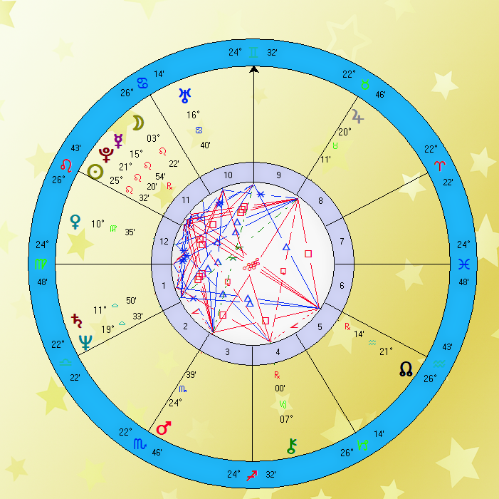 Alkoholizam se u njegovom natalu vidi kroz vladara Ascendenta, retrogradnog Merkura koji se nalazi na 15. stepenu ali kako je u pitanju retrogradna planeta ona uvek deluje i na stepen pre ( sa kojeg se vraća), a to je 16. stepen. Ovo je stepen Raka, znaka kojim je u astrologiji opisan alkohol.